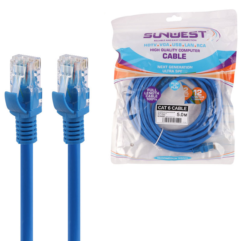 خانه کامپیوتر تجهیزات شبکه کابل و تبدیل شبکه و تلفن کابل شبکه Cat6 سان وست طول 5 متر