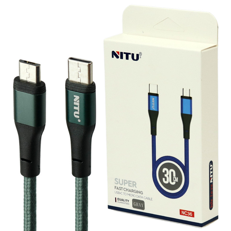 کابل کوتاه فست شارژ Nitu NC36 Type-C to MicroUSB 2.4A 30cm
