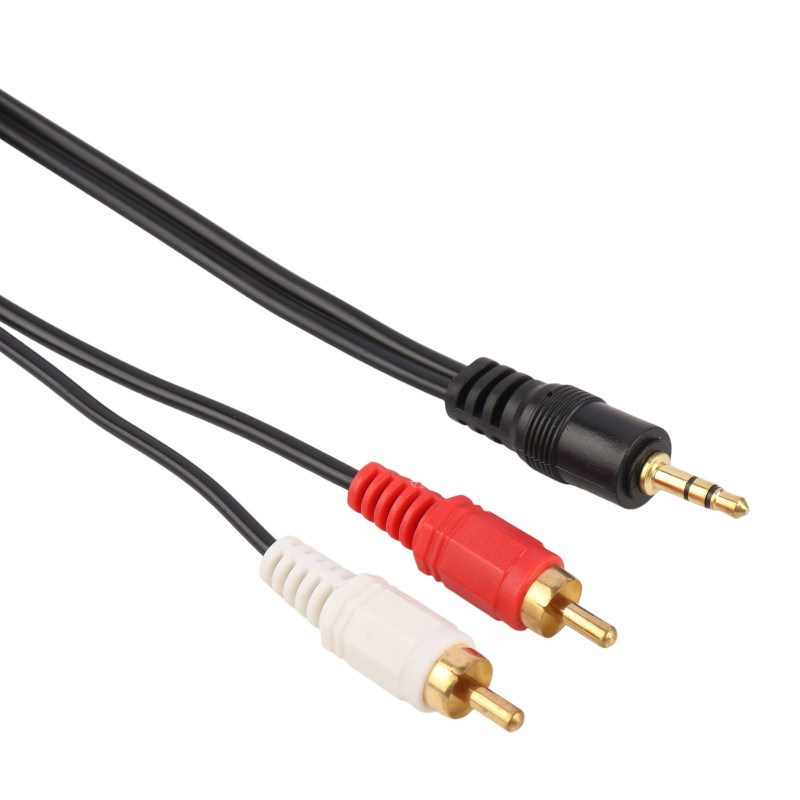 طول کابل 3 متر با روکشی از جنس پلاستیک، دارای یک عدد کانکتور از نوع جک 3.5 میلی متری صدا و دو فیش AV یا RCA