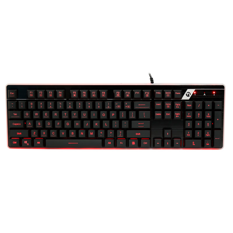 بدنه ی خوش ساخت و ارگونومیک از جنس پلاستیک ABS با مقاومت در برابر ضربه و ورود مایعات دارای ۱۰۴ کلید مکانیکال شامل کلید های مالتی مدیا و میانبر FN، با نوردهی ۷ رنگ در زمینه کیبورد وجود پایه های تنظیم ارتفاع جهت متناسب سازی وضعیت کاربر و جلوگیری از خستگی در استفاده دراز مدت امکان اتصال سریع بدون نصب درایور به انواع سیستم های کامپیوتری و …  ویندوز، اندروید و لینوکس با اتصال Plug & Play اتصال باسیم از طریق رابط یو اس بی به طول ۱۵۷ سانتی متر و ایجاد آزادی عمل در استفاده از محصول