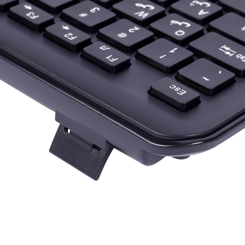 اتصال با سیم از طریق رابط USB با کابل ۱۴۰ سانتی متری ساخته شده با روکش TPE مقاوم در برابر گره کشش و پارگیمجهز به ۱۰۴ عدد کلید فیزیکی با حروف فارسی حک شده بر روی آن و میزان ضربه پذیری تا ۵ میلیون کلیکبدنه ساخته شده از جنس پلاستیک با کیفیت مقاوم در برابر آسیب های فیزیکی و نفوذ رطوبت به داخل آندارای استاندارد های سلامت فیزیکی محصول CE، FCC و RoHS
