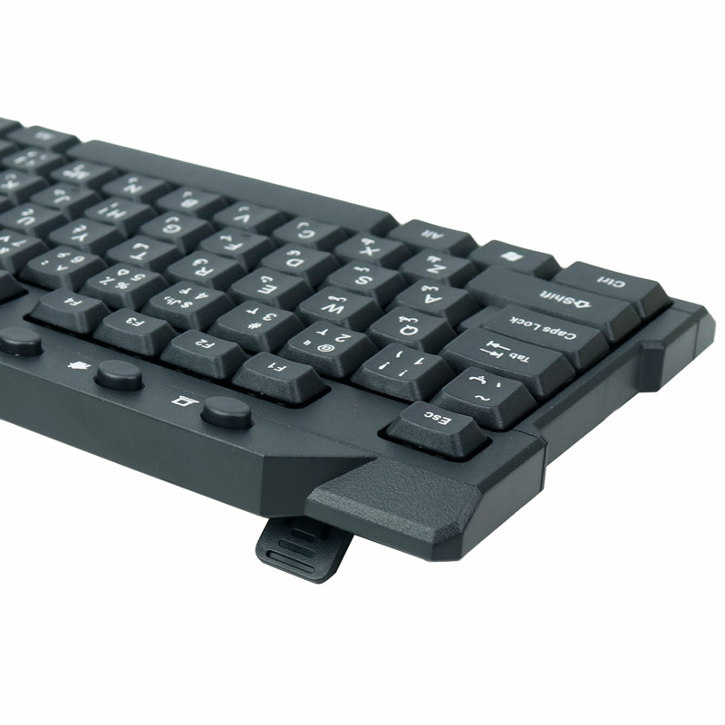بدنه ای ساخته شده از پلاستیک مرغوب و باکیفیت، مقاومت در برابر رطوبتقابلیت تنظیم ارتفاع، امکان اتصال از طریق رابط USB به طول ۱۲۰ سانتی مترمجهز به ۱۰۴ عدد کلید با عمر ضربه پذیری بالا و حروف حک شده فارسی بر روی کیبوردبهره مندی از کلید های میانبر و مولتی مدیا برای دسترسی راحت تر