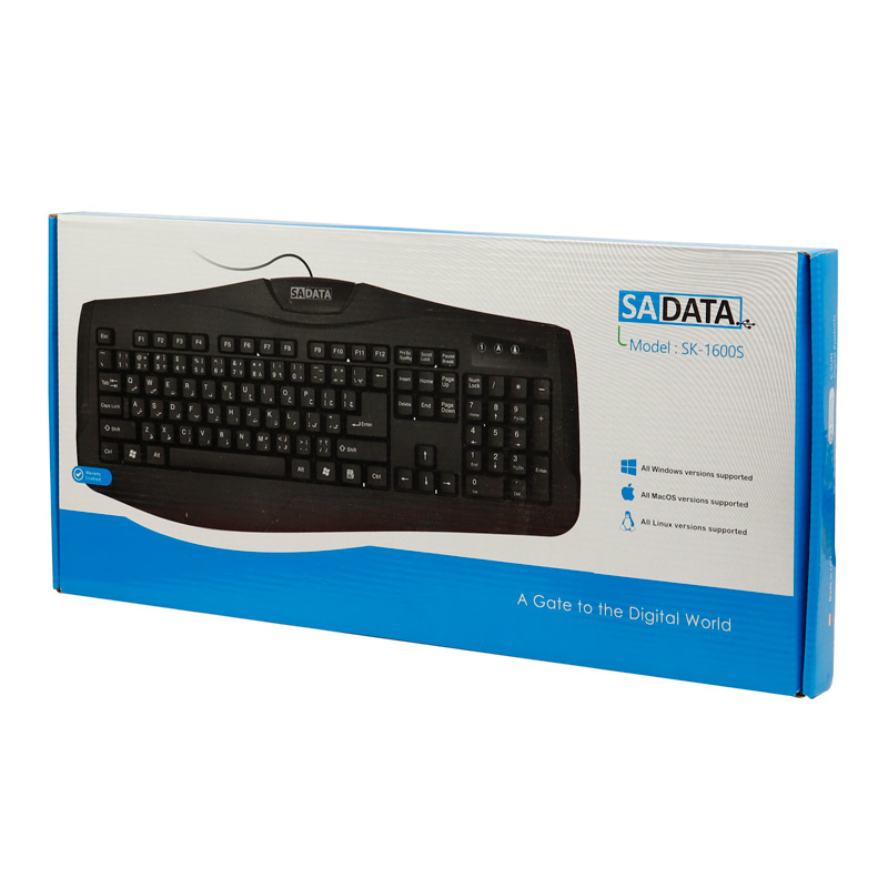 کیبورد مدل SK-1600S یکی دیگر از محصولات خوب شرکت سادیتا است که به صورت با سیم تولید شده و می توانید آن را از طریق کابل ۲٫۰ USB به کامپیوتر و لپ تاپ خود متصل کنید. این کیبورد با طراحی ارگونومیک خود به شما اجازه میدهد تا به راحتی تایپ کنید و در مدت زمان زیاد، دستان شما خستگی زیادی را احساس نکنند. تعداد کلید های تعبیه شده در این کیبورد ۱۰۴ کلید است (که شامل کلیدهای مولتی مدیا نمی شود)، کیبورد SADATA SK-1600S دارای سه چراغ LED می باشد که برای اعلان روشن یا خاموش بودن کلیدهای Num Lock – Caps Lock و Scroll Lock تعبیه شده اند. این کیبورد یک صفحهکلید استاندارد است که مخصوص تایپ کردن سریع و راحت طراحی و تولید شده است و دارای کلیدهای برجسته ای بوده که بالاترین سطح راحتی را به شما ارایه می دهد.