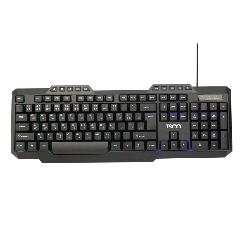 داشتن یک کیبورد خوب یکی از نیاز های اساسی هر کامپیوتری می باشد، با داشتن یک کیبورد با کیفیت و مناسب می توانید راحت تر و سریع تر با سیستم کار کنید و لذت بیشتری ببرید. کیبورد TK-8019 ساخته شده توسط شرکت تسکو می باشد، شرکت تسکو یکی از برجسته ترین شرکت های ایرانی در زمینه تولید لوازم جانبی کامپیوتر است. متریال ساخت کیبورد TK-8019 از مواد با کیفیت و مرغوب می باشد و همین مسئله طول عمر این محصول را بالا می برد. طراحی این کیبورد به صورت زاویه دار و دارای ۱۰۴ کلید نرم بوده به طوری کاربر در استفاده طولانی مدت از آن خسته نشود. TK-8019 دارای سه عدد نشانگر جهت نمایش وضعیت روشن بودن سیستم، Caps Lock و Num Lock به کاربر می باشد. برخورداری این محصول از نورپردازی داخلی RGB به امر زیباسازی کیبورد در محیط های با نور کم و فضای تاریک کمک شایانی کرده است.
