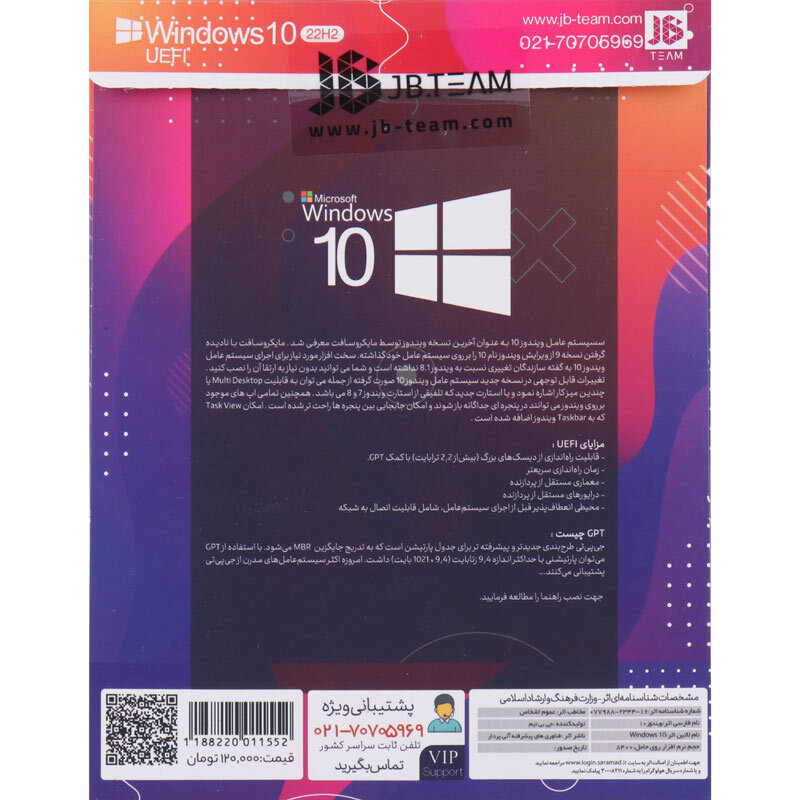 سیستم عامل ویندوز 10 نسخه Home/Pro/Enterprise ورژن 22H2 با قابلیت بوت UEFI از نشر جی بی تیم